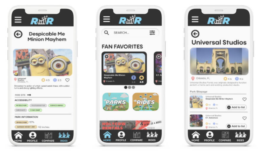 RideRaters is a theme park attraction rating app, with helpful information about attraction stats, accessibility, and vacation customization. Users should feel comfortable and confident when deciding on what theme park attractions best suit their needs. Rides and attractions will also include a rating system where users can leave personal reviews about their experience, as well as understanding what accessibility options it may have.