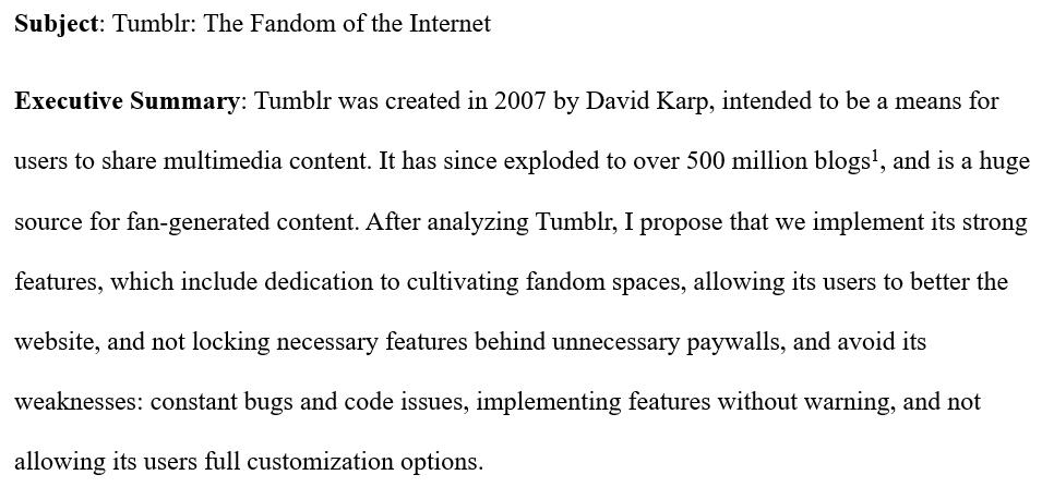 "Media Product Analysis" was a research paper written during my Creative Industies 2023 class at UCF. The idea behind the assignment was to "...imagine that you are a media worker whose job it is to understand your competitor's project", and then "...write a memo that explains the product's industry position and makes an argument about whether your company should try to do similar or different things with your own products."